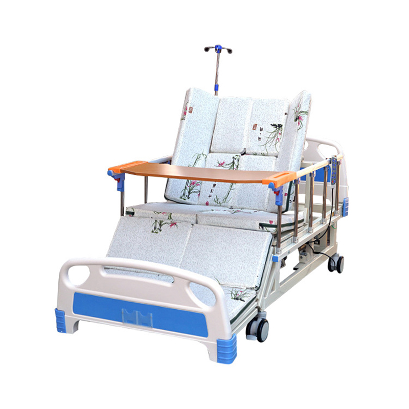 电动护理床还有设置坐便的装置,帮助病人在起身以后,能在床上像正常人一样使用坐便,不会污染到床单,减轻清洗床单被罩的麻烦。